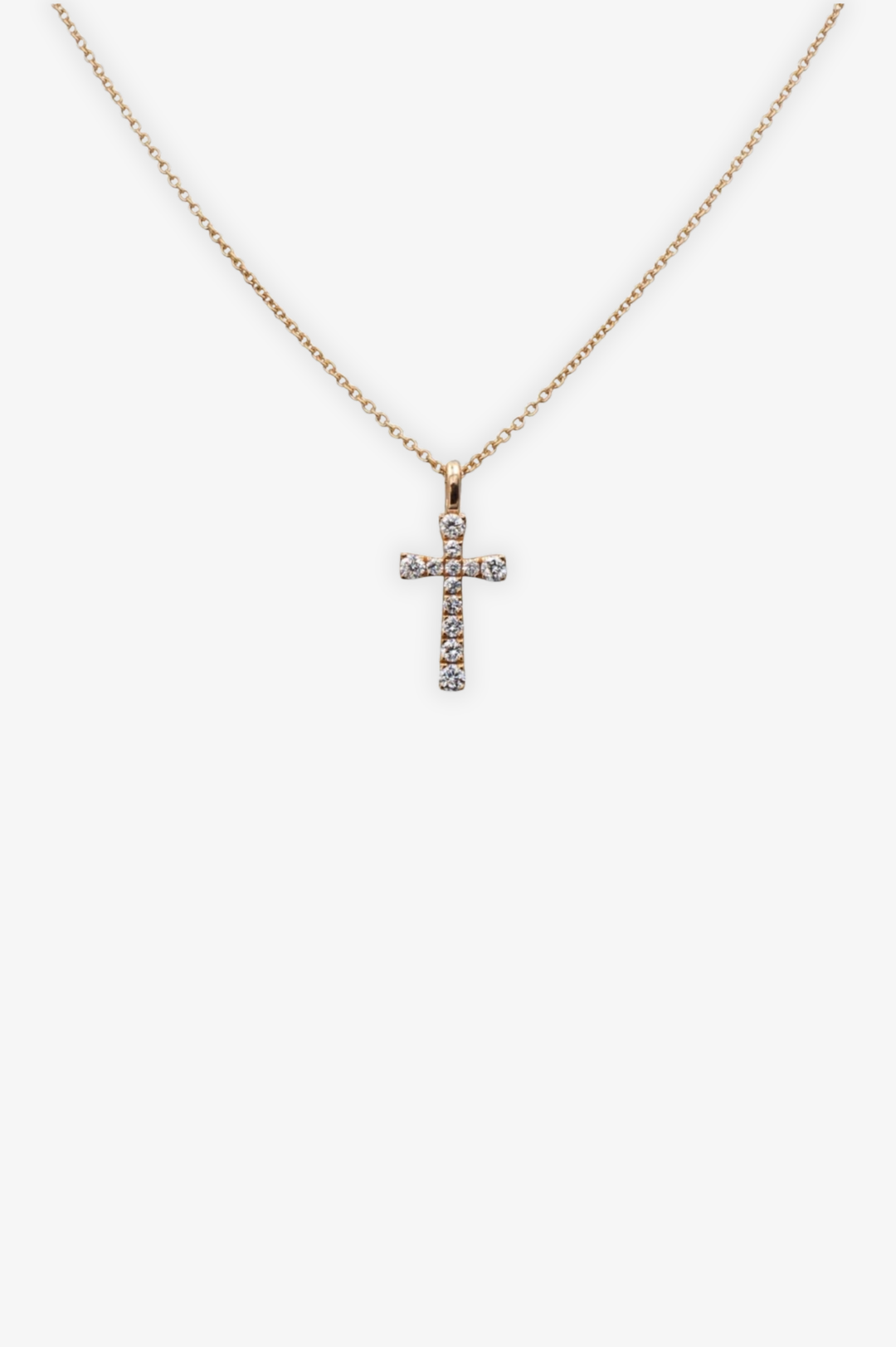 Pink Gold Necklace with Tiny Cross and Diamonds