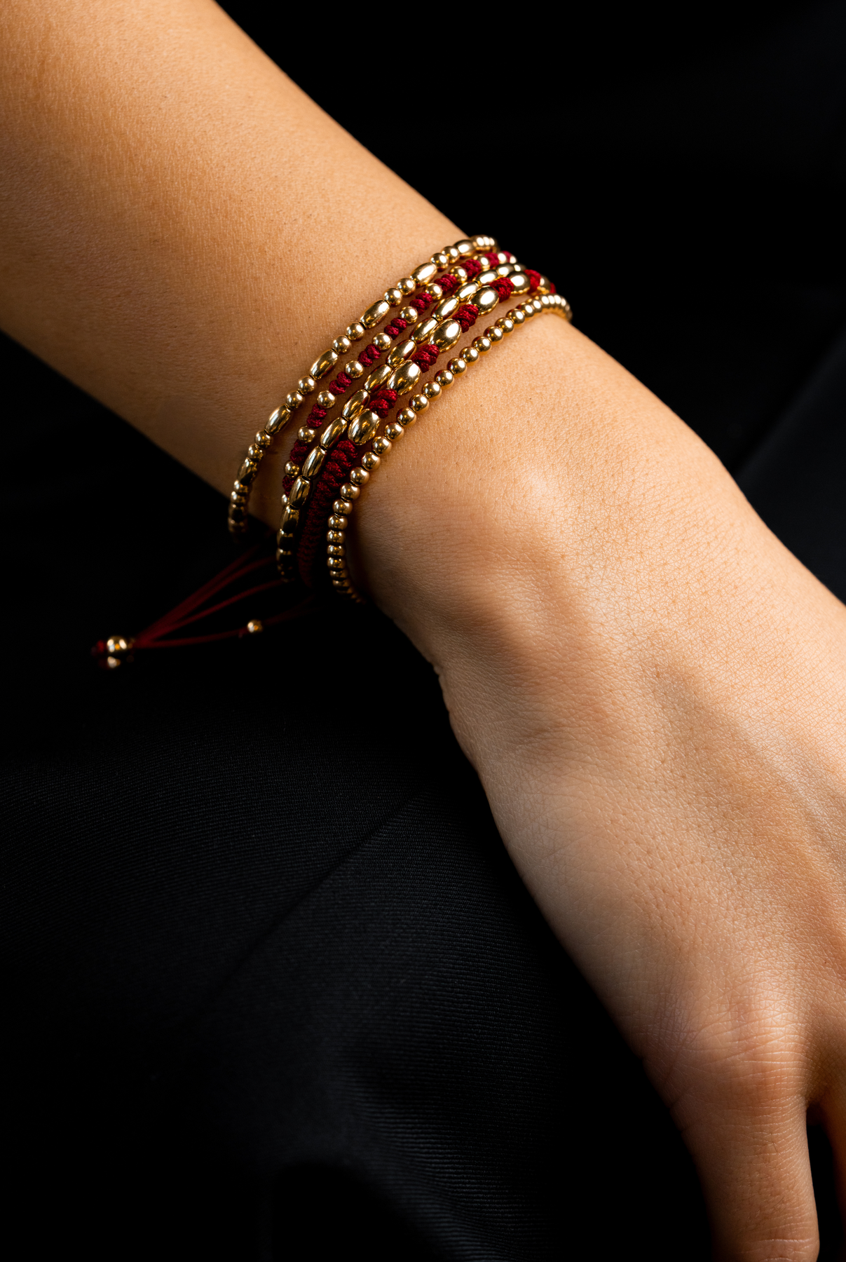 Pulseira em ouro amarelo com algodão bordeaux